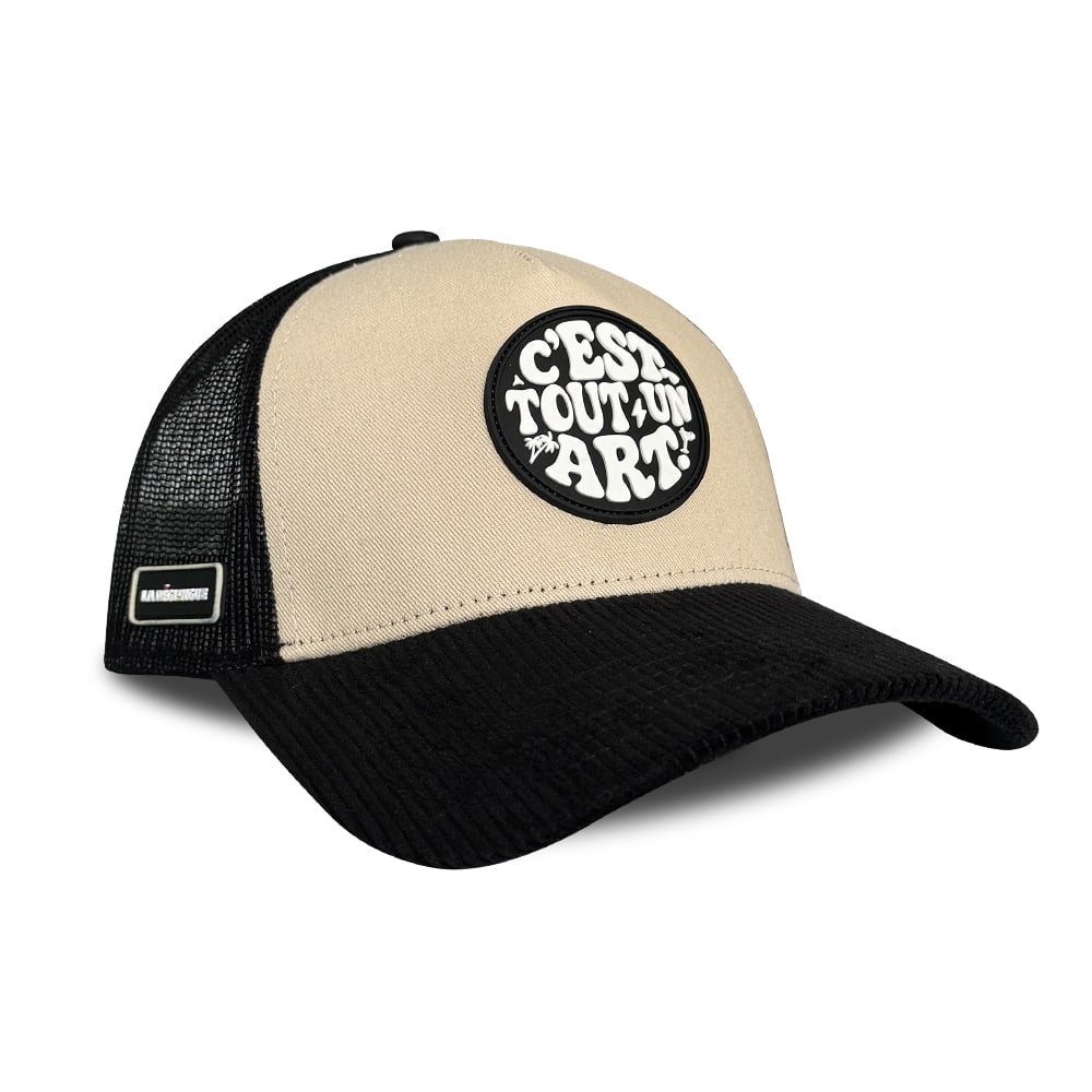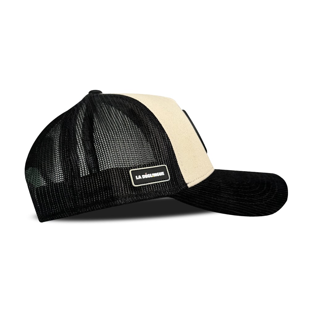Avec son look noir et beige ultra-stylé, sa visière en velours côtelé noir et ses patchs exclusifs La Déglingue et C’est tout un art., cette casquette incarne parfaitement ton aura : à la fois discret, classe et totalement imprévisible.