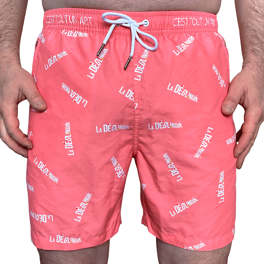 Champagne avec cerise sur le gâteau ! Le short de bain parfait pour faire le beau ou le pied de grue en attendant son verre au pool house du palace. Magnifique tenue courte de bain avec poches latérales zippées afin de ne pas égarer la gold, la monnaie, ni même les clefs. Séchage rapide pour ne pas rentrer mouillé et cordon de sécurité pour ne pas le faire tomber, messieurs dames, voici Le Flamant Rose !