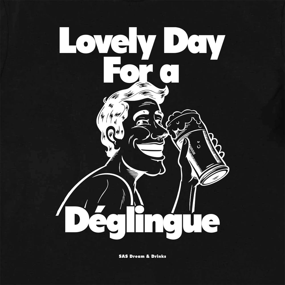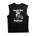 La Déglingue enfile ses plus beaux muscles et rend hommage aux séducteurs de comptoir, aux poètes du rosé et aux lovers du dimanche. « Le Loveur », c’est le débardeur noir qui transpire l’amour… et un peu l’alcool. Sur le torse : notre logo, discret. Dans le dos : un gentleman à la cool, un verre à la main, et une vérité universelle : “Lovely day for a Déglingue”. Car oui, même l’amour mérite son happy hour.