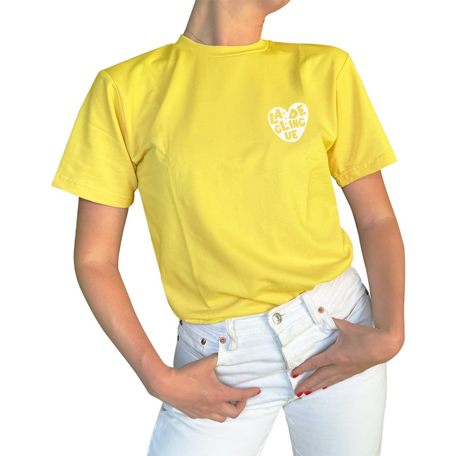 Avec ce t-shirt jaune citron, La Déglingue t’envoie direct sur une plage de sable chaud… même si t’es coincée en centre-ville.
